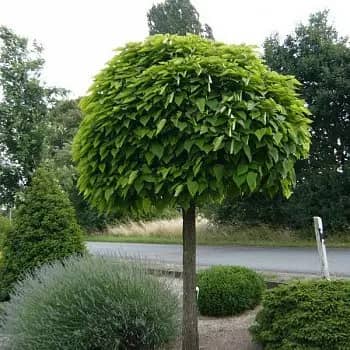Розлоге красиве дерево досягає у висоту до 3-4 метрів. Крона густа, куляста, ріст гілок направлений вниз. Квітки середні, зібрані в колосовидні суцвіття. Листя щільні яйцевидної форми. Цвіте в кінці квітня – початок травня.