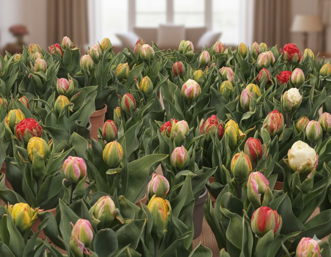 Додаткового зимового укриття кімнатні тюльпани не потребують — достатньо стабільної температури в приміщенні та легкого догляду.